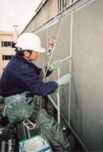 ■実際のところ、コストがかかると言った理由で先伸ばしにして、トラブルが発生してからあわてて修繕するのがほとんどです。こんな場合でも、無足場工法では、ピンポイントに迅速かつ経済的な処置が可能となり大いに役立っています。