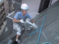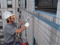 ■実際のところ、コストがかかると言った理由で先伸ばしにして、トラブルが発生してからあわてて修繕するのがほとんどです。こんな場合でも、無足場工法では、ピンポイントに迅速かつ経済的な処置が可能となり大いに役立っています。